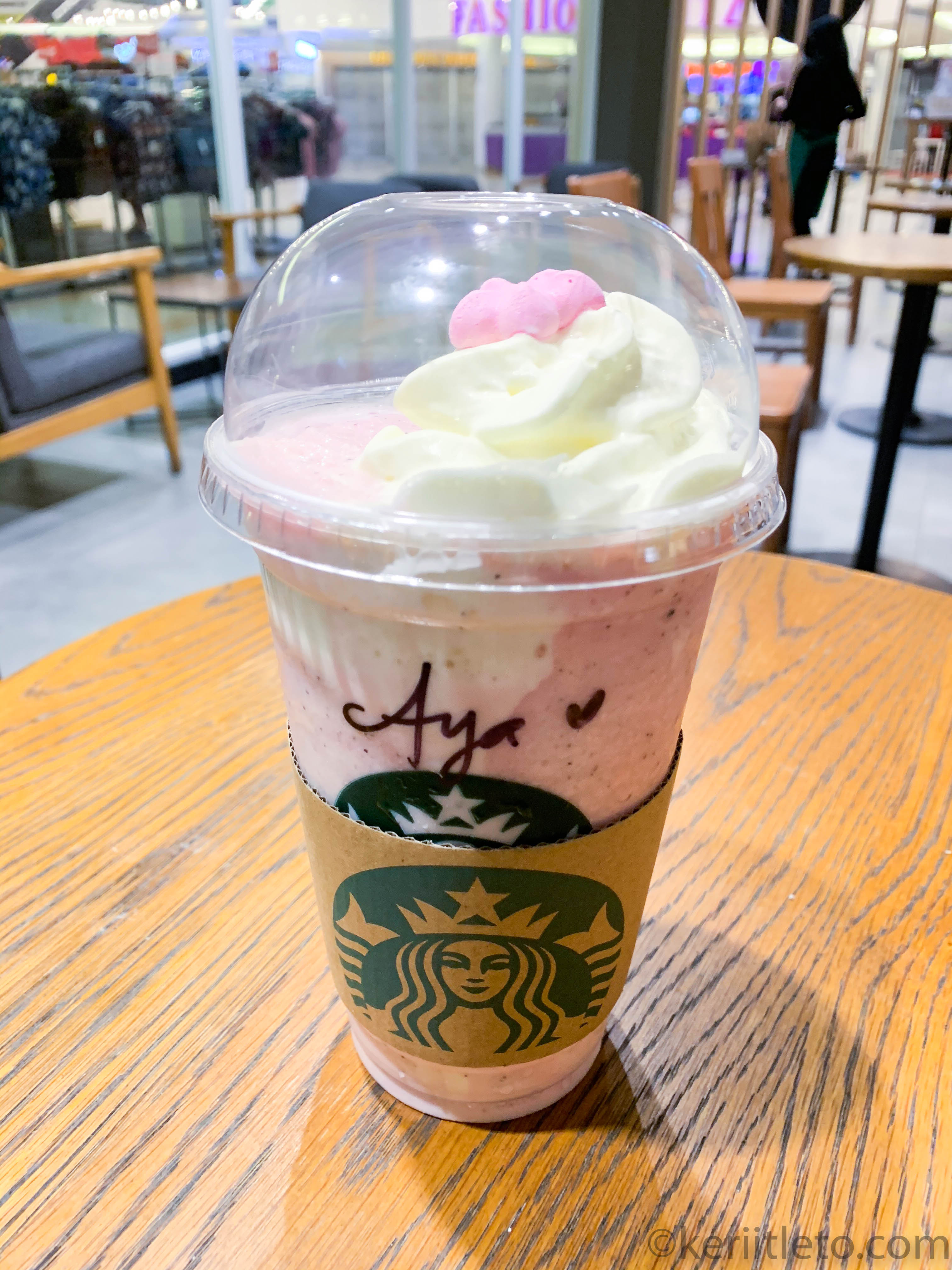 Today I feel like I want to try a new drink at Starbucks ( yes! it's expensive!! my money) but just this time. But, sadly I didn't get the duyung ( mermaid) tail because it already finishes so they replace with small sakura as below.